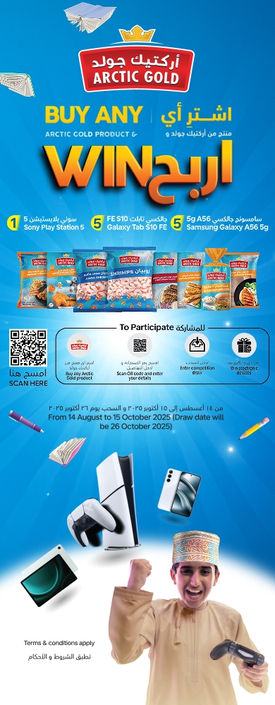 • The Promotion is valid from 14.08.2025 to 15.10.2025 at all participating retail outlets in the Sultanate of Oman.